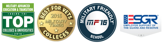 Our awards and recognitions are emblematic of our continued support to our military-affiliated students. We have been recognized for our outstanding commitment to fulfilling the educational needs of our returning servicemembers and their families, and also for our comprehensive services not directly related to education. Please click on each of these logos to learn more about these distinctions.